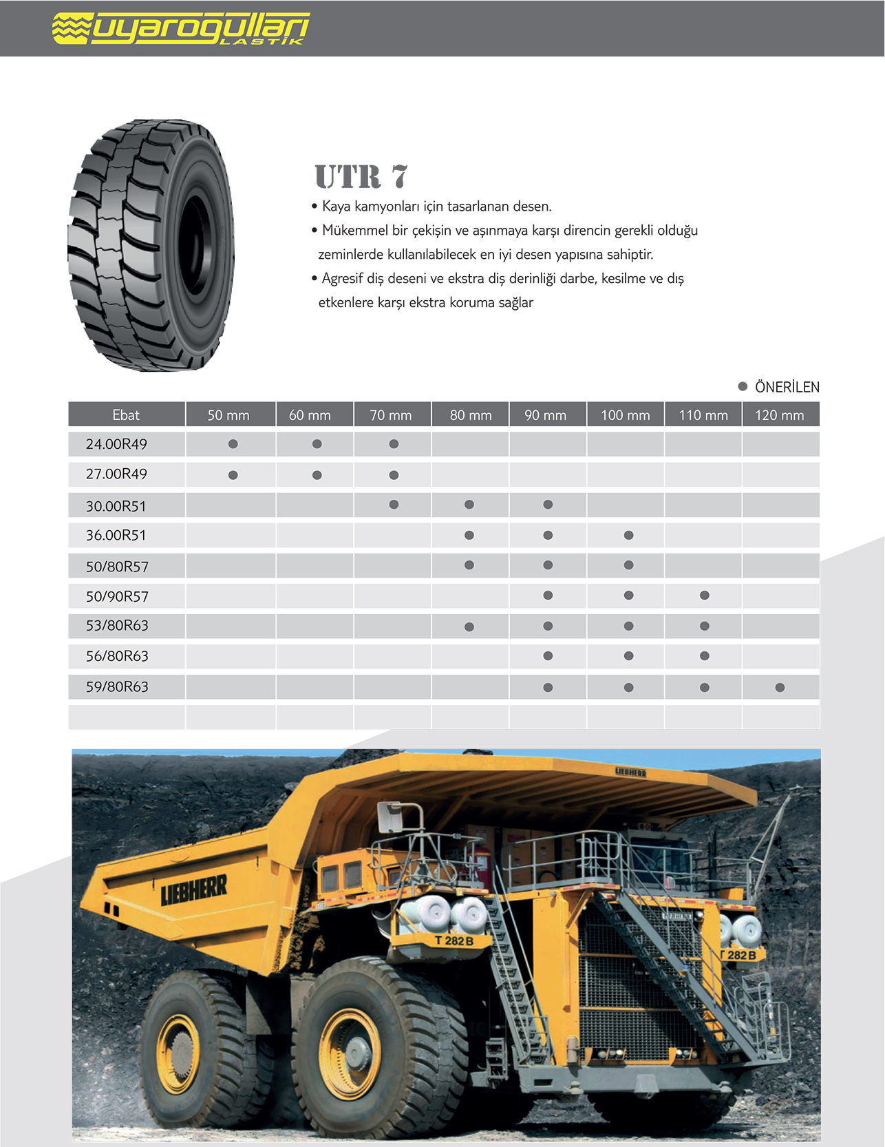 Yıllık 20.000 adet kaplama kapasitemiz ile uluslararası, yurt içi, taş ocakları, maden ocakları, mermer ocakları, beton santralleri, inşaat, hafriyat, taahhüt firmaları, özel idareler ve belediyelere ait kamyon, otobüs, iş makinaları lastikleri güvenle kaplanıp kullanılabilmektedir. Her türlü yol şartlarında çalışabilecek zengin desen seçeneklerimiz ile 7/24 hizmet vermekteyiz. 24 saat içinde kaplama ve tamir hizmeti, acil yol yardımı, yerinde sökme takma vermiş olduğumuz hizmetler arasındadır.