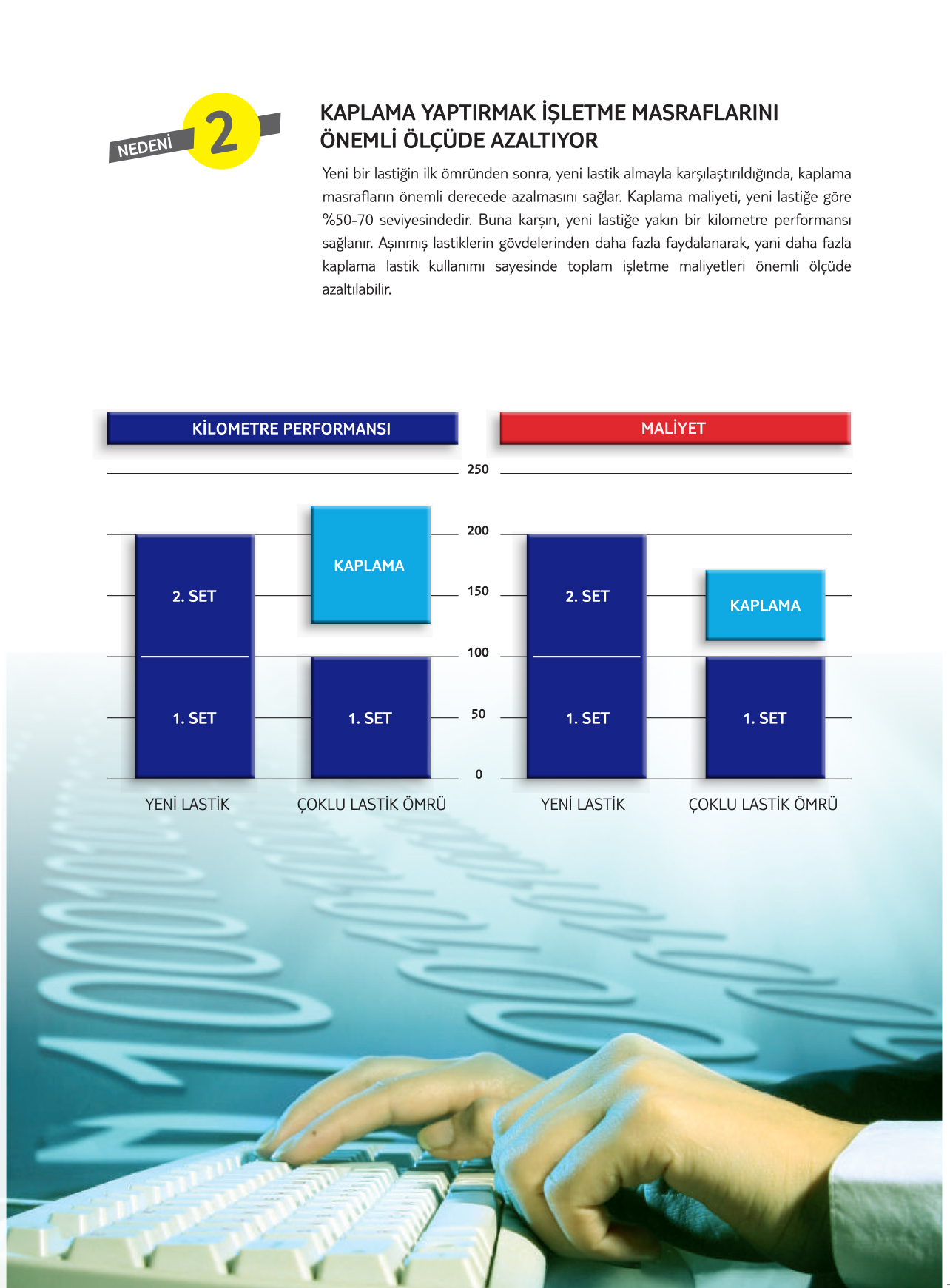 Ön pişirmeli yüksek yoğunluktaki sırt kauçuğu, çalışma alanı standartlarına göre hazırlanmış zengin desen çeşitleri, üstün kilometre performansı ile en düşük kilometre maliyetinin sağlamış olduğu maliyet avantajı, lastiğin kaplanabilirliğinin korunması, uzun karkas ömrü sağlayan soğuk sistem kaplama, sıcak kaplamanın değişken ve sabit olmayan kauçuk kalitesi dar ve standart desen kalıpları ile karkasa uyguladığı yüksek ısı ve basıncın verdiği zararı tamamıyla ortadan kaldırmış olup bugün kaplama sektöründe soğuk sistem kaplama dünya pazarında %70’in üzerinde pazar payına ulaşmıştır.