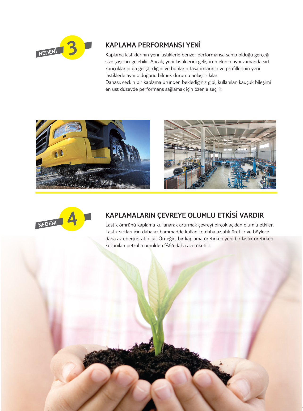 Günümüzde gelişmiş ve gelişmekte olan tüm ülkelerde hızla artan araç ve lastik sayısı, bir kamyon lastiğinde 50’den fazla hammadde 10’dan fazla karışımın olduğu, ömrünü tamamladığında yaklaşık 60 kg civarında bir atık halini aldığı, geri kazanımı çok zor doğaya, çevreye, ülke ekonomisine verdiği zarar düşünüldüğünde lastiklerin birkaç defa yeni lastik performansında kullanımı ve kaplanabilirliği konusunda maksimum özeni göstermeyi bununla birlikte, enerji ve yer altı zenginliklerinin korunması ve tasarrufu, zararlı toksin maddelerin daha az tüketilmesi ile soğuk sistem kaplama sosyal bir kültür olarak kabul edilmiştir.